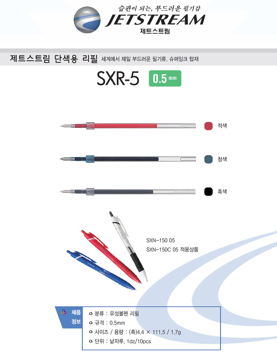 미쓰비시 제트스트림 리필 SXR-5 0.5 (흑,1개) 10개/set