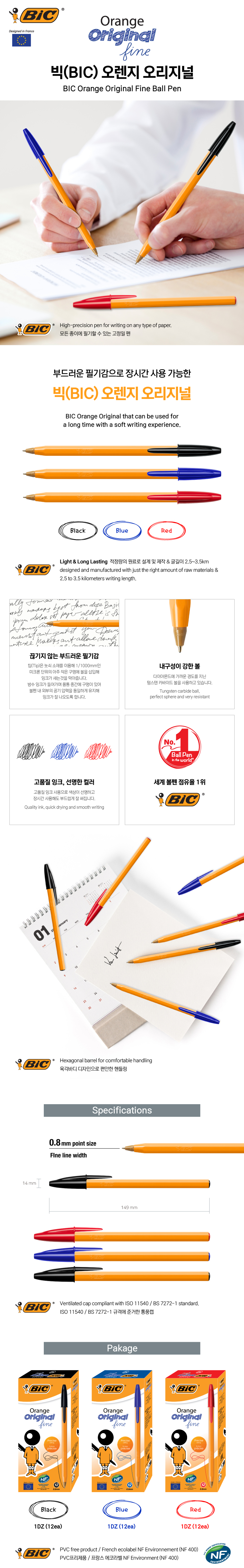 BIC)오렌지볼펜(0.8mm/청/12개입)