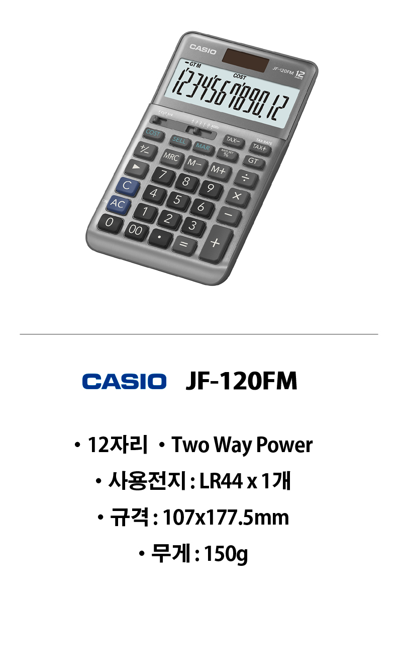 CASIO 계산기 JF-120FM(그레이/12자리)(JF-120BM 대체)