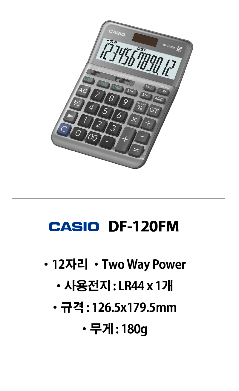 CASIO 계산기 DF-120FM(그레이)(DF-120BM 대체)