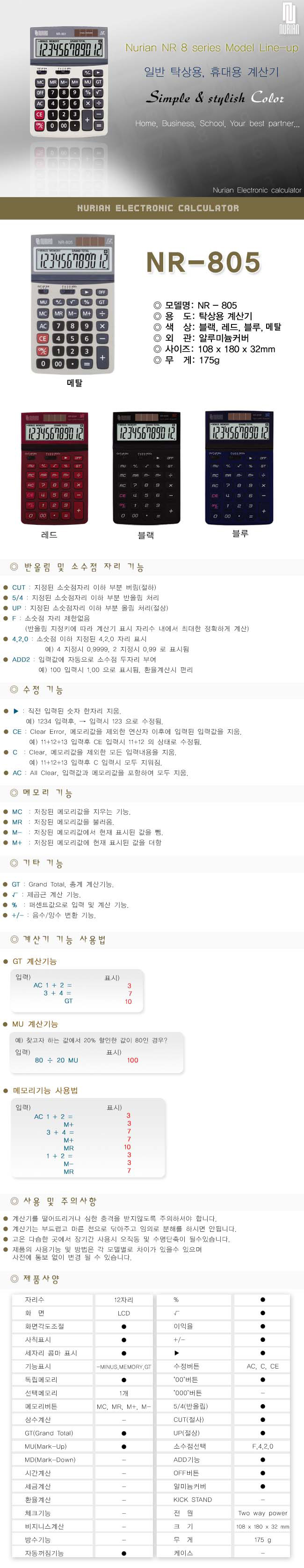 누리안)계산기(NR-805S/메탈/12자리)
