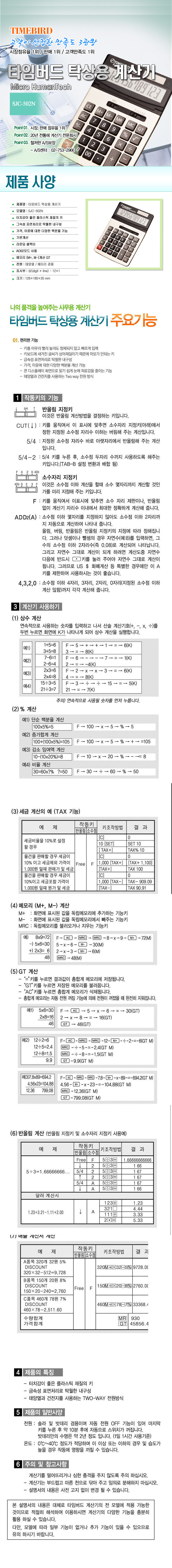 타임버드)계산기(SJC-502N)