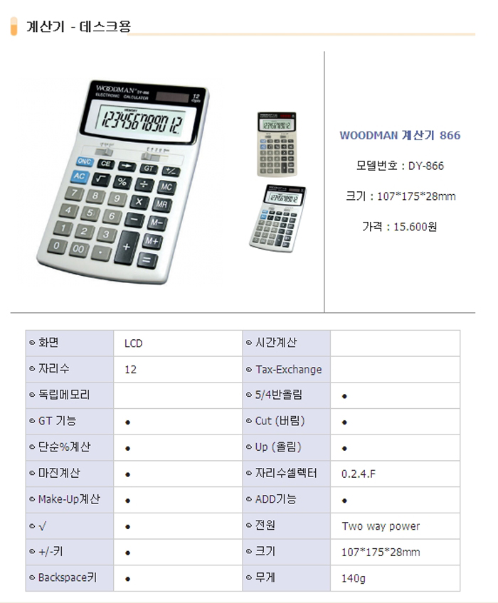 우드맨)계산기(DY-866/12자리)