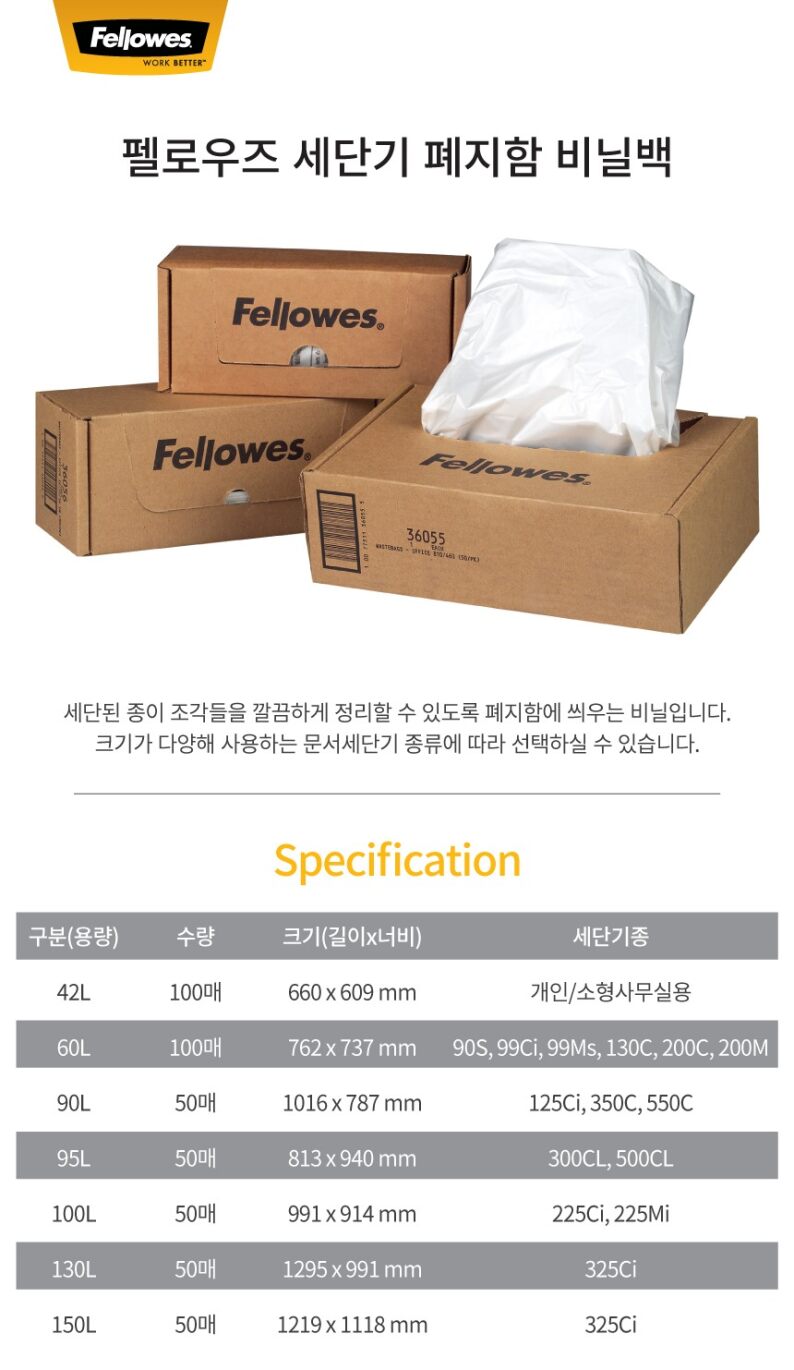 펠로우즈)문서세단기 폐지함 비닐팩(CRC36054/90L/50매)
