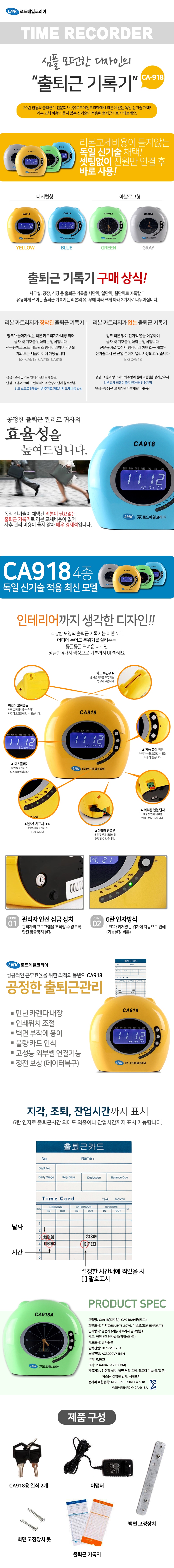 로드메일코리아 출퇴근기록기 CA918A (리본불필요,열전사,6란인자/그린,그레이 중 택1/카드200매+25인용카  ※ Analog Type