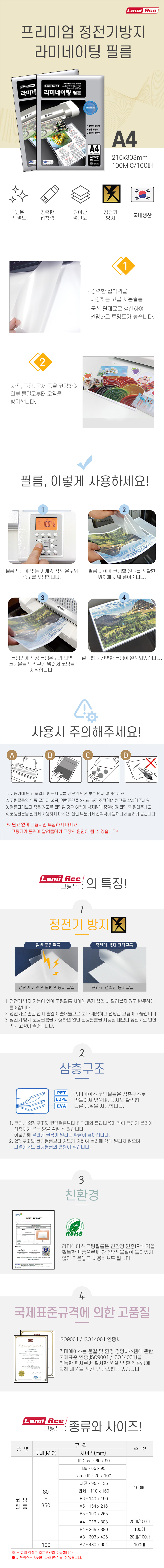 라미에이스)프리미엄라미네이팅필름(A4/100mic/100매)