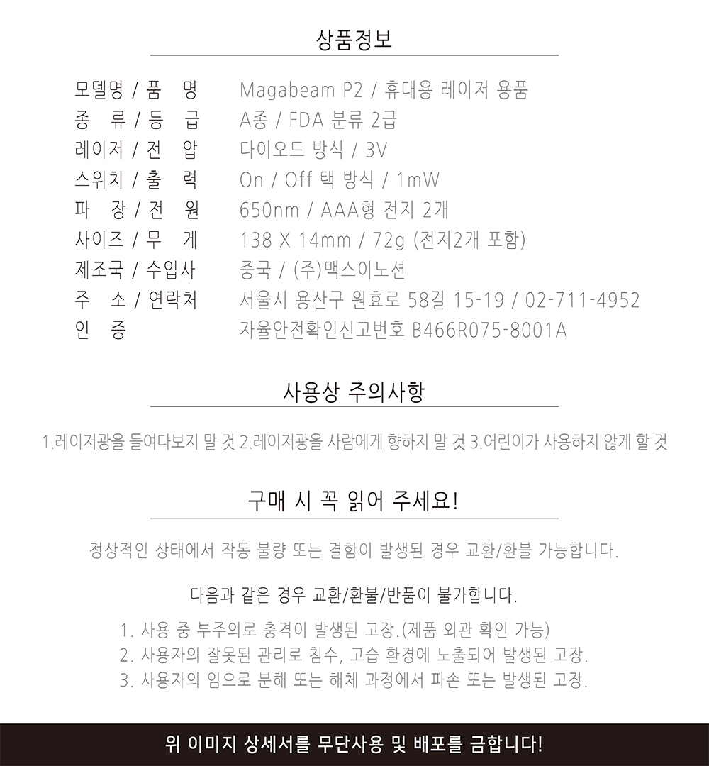 전자상거래 상품정보제공 고시에 의한 상세정보입니다.
