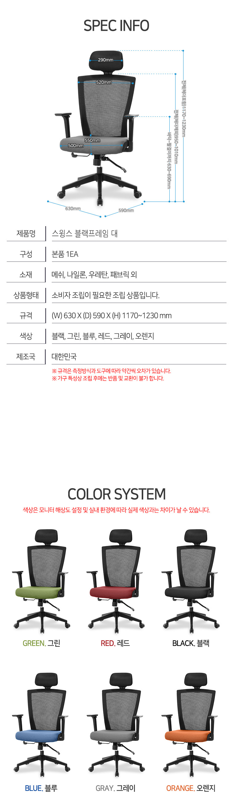 스윙스(블랙프레임) 대(W630*D590*H1170~1230)