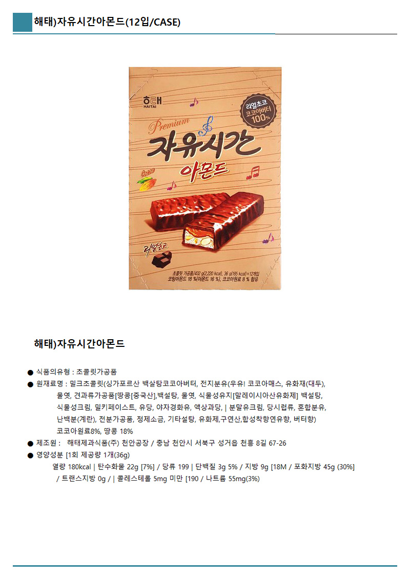 해태)자유시간아몬드(12입/CASE)