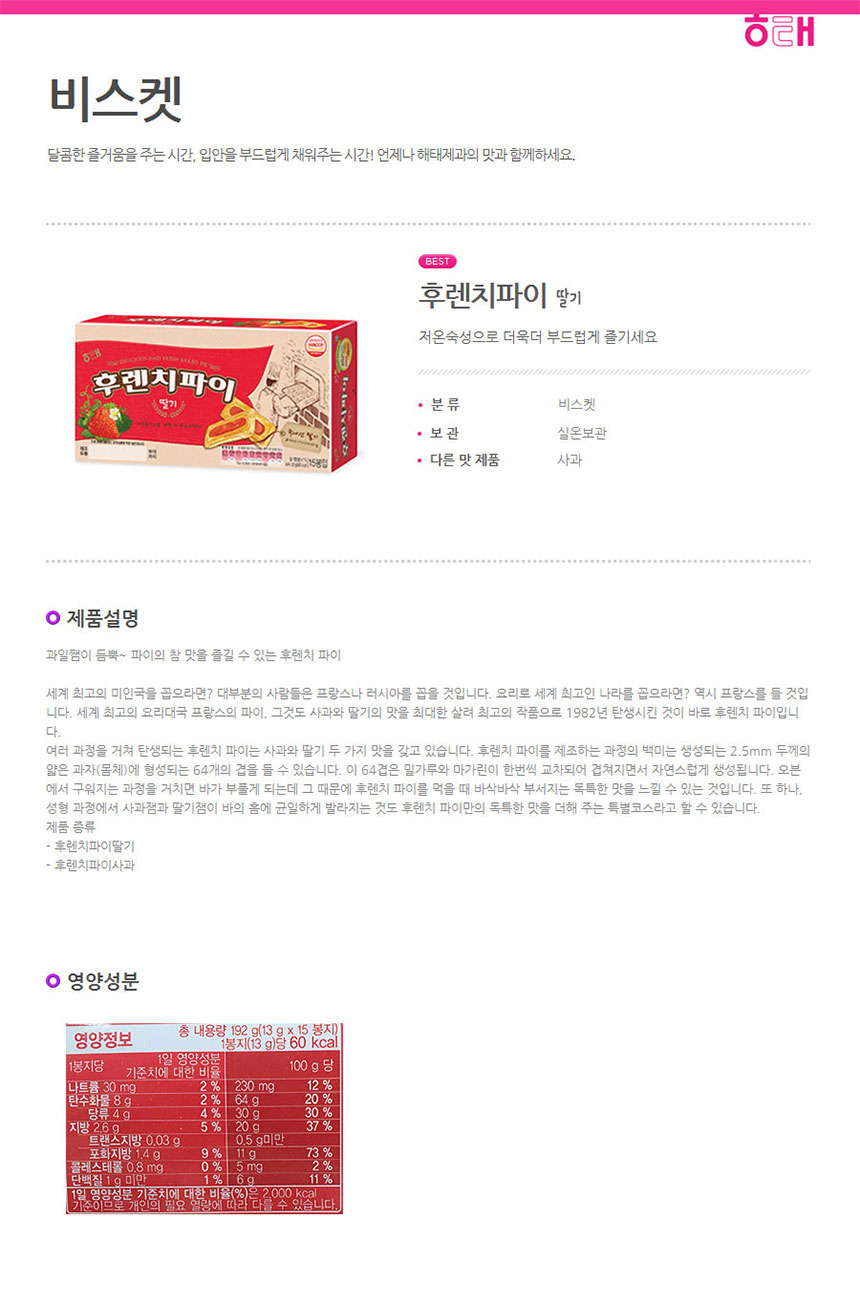 해태 후렌치파이 딸기 3800 (192g)