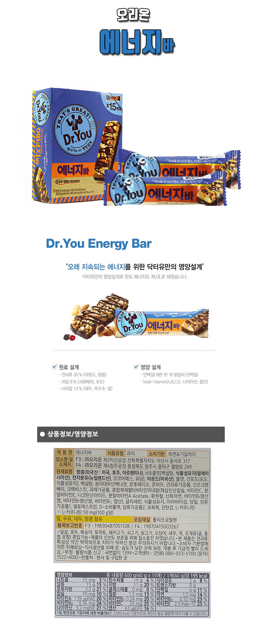 | 원재료명 및 함량 | 땅콩16%(호주산) 아몬드13%(미국산) |