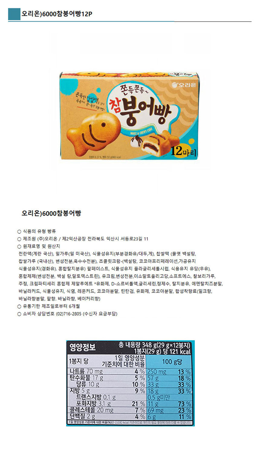 오리온 쫀득한 찹쌀떡 먹은 참붕어빵 (348g,12개입)