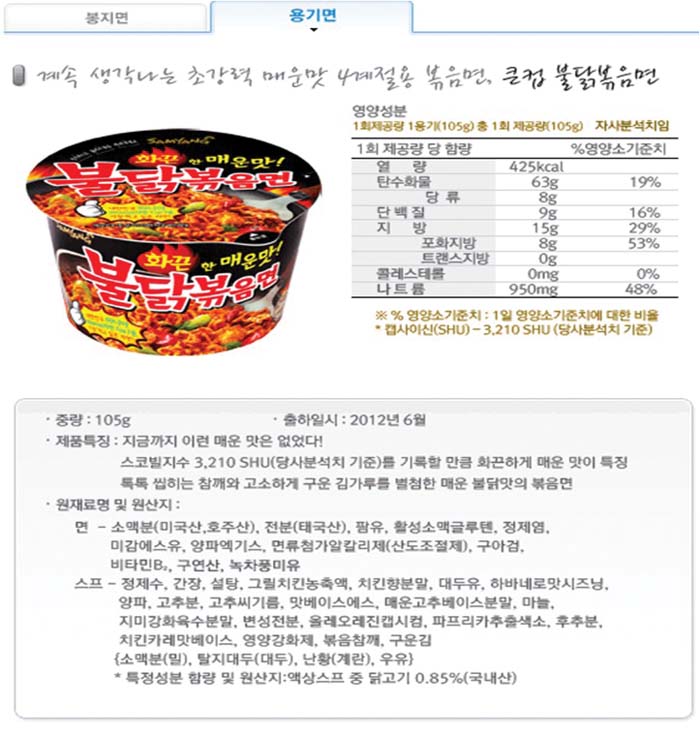 삼양 불닭볶음면 큰컵 (105g*16개입/BOX)  ※ BOX상품