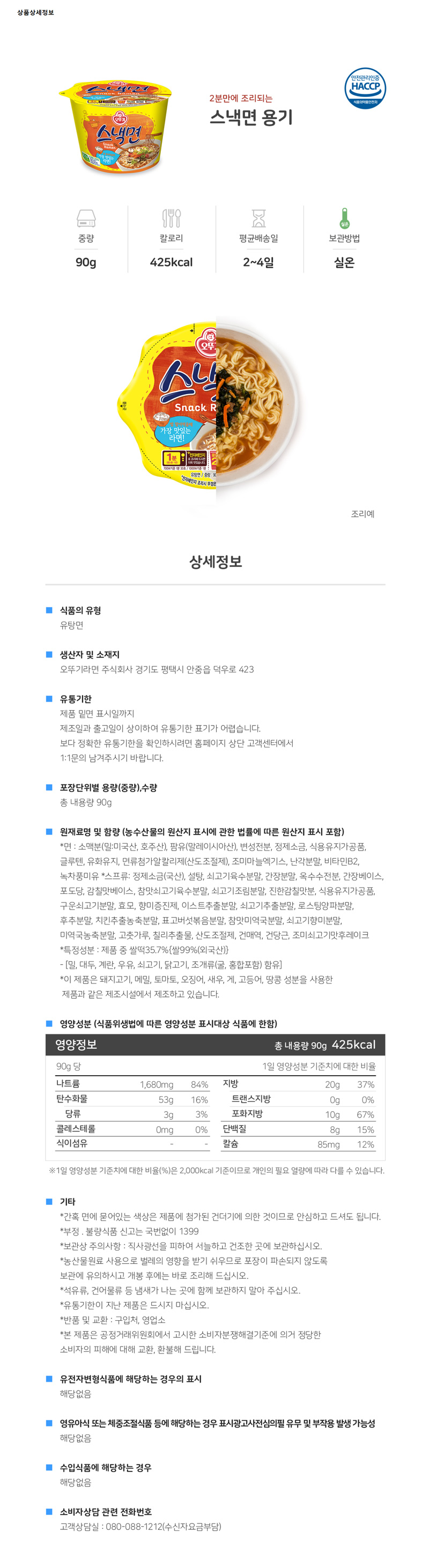 오뚜기 스낵면 큰사발(90g*12입/BOX)