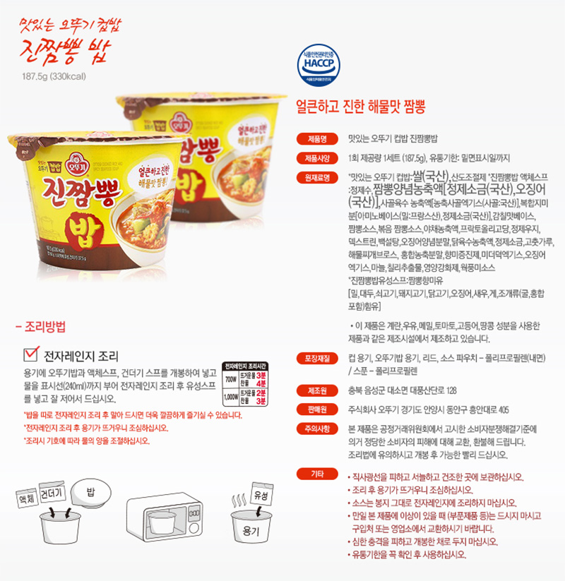 오뚜기 컵밥 진짬뽕밥(217.5g*12개입/BOX)
