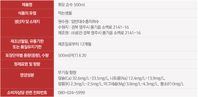 코카콜라음료 휘오 순수 (500ml*20PET/BOX)