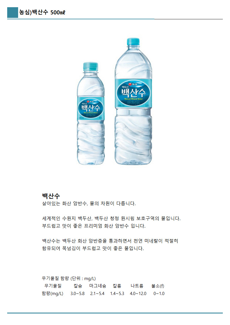 농심 백산수 (500ml,20PET/BOX)
