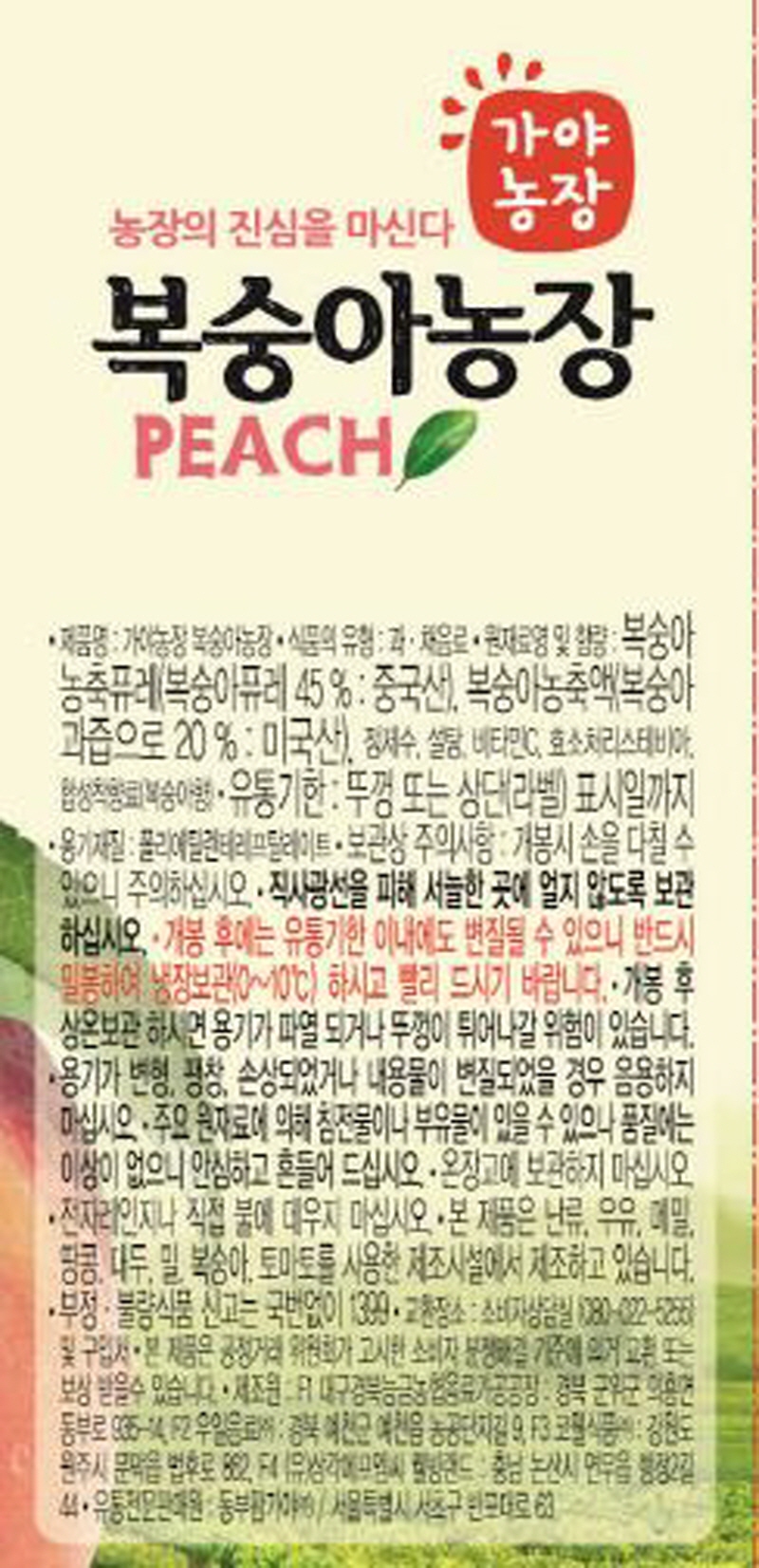가야 복숭아 농장 은 타 복숭아 음료에 비해 과즙 함량을 높여 진한 맛과