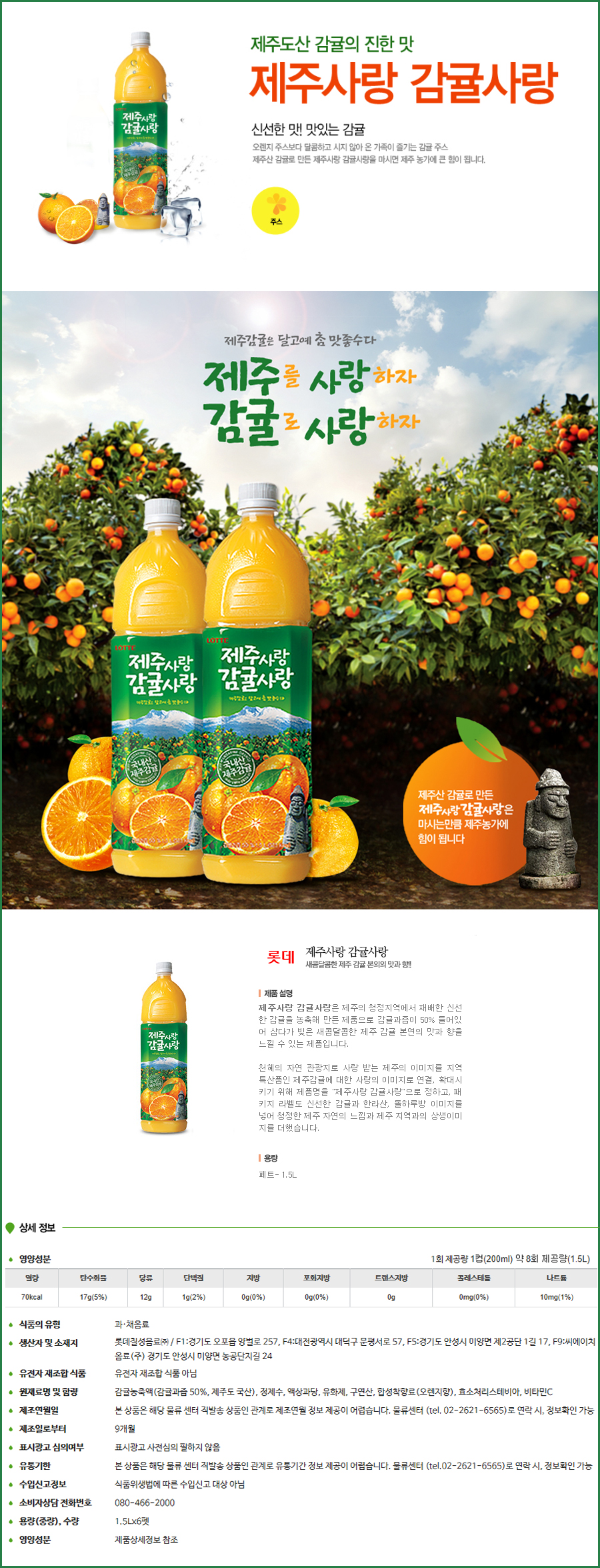 롯데 제주사랑 감귤사랑 (1.5L PET)
