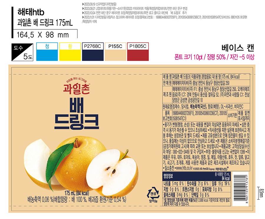 해태htb 썬키스트 배 (175ml,30캔/BOX)