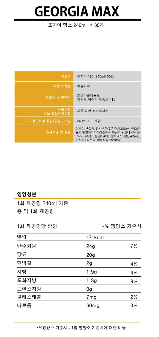 해태htb 조지아 맥스 (240ml,30캔/BOX)
