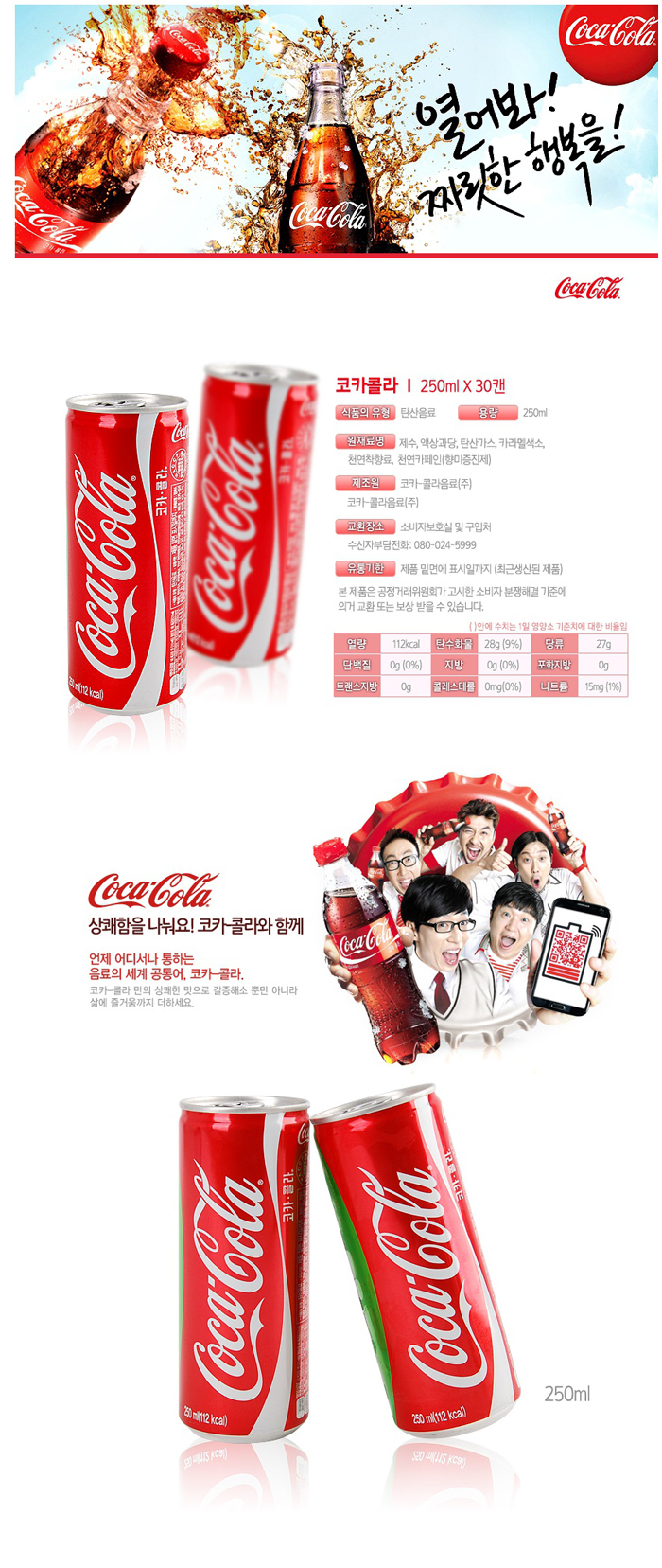 | 원재료명 및 함량 | 정제수, 액상과당, 백설탕, 탄산가스, 카라멜색소, 인산, 천연착향료 |