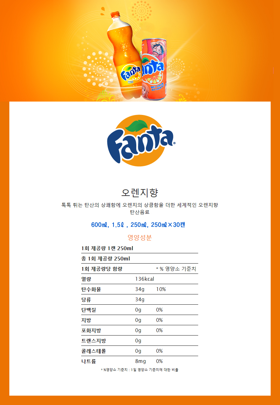 코카콜라음료 환타 오렌지 (250ml, 30캔/BOX)