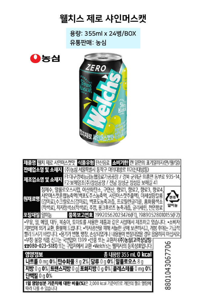 농심)웰치스 샤인머스캣 제로 (355㎖/24개입)
