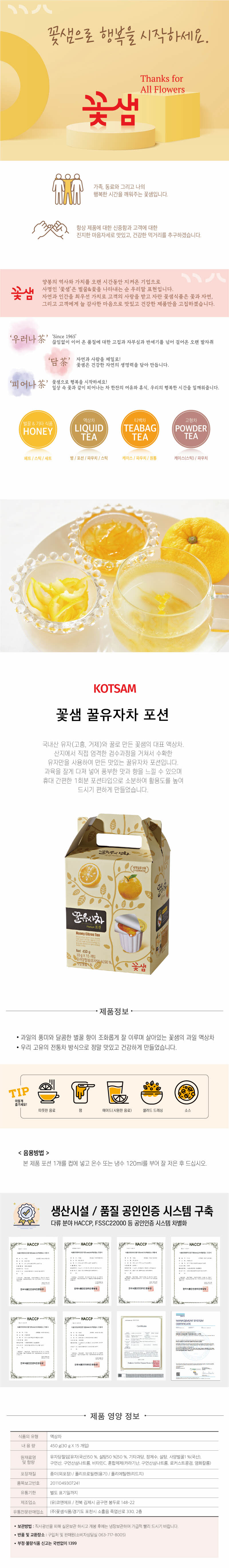 꽃샘 꿀 유자차 포션 (30g*15T)