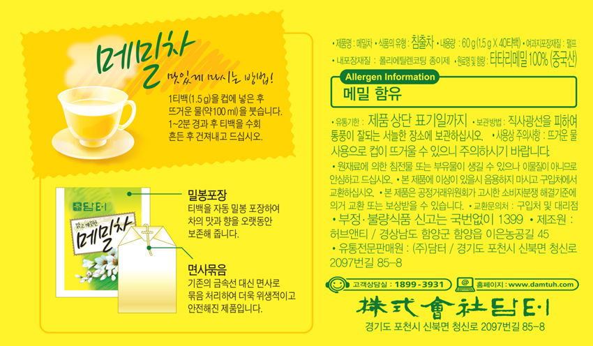 | 생산자 및 소재지 (수입자) | ㈜담터( 경기도 포천시 신북면 청신로 2097번길 85-8) |