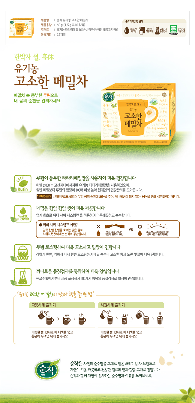 샘표 순작 유기농 고소한메밀차 (1.5g*40티백)