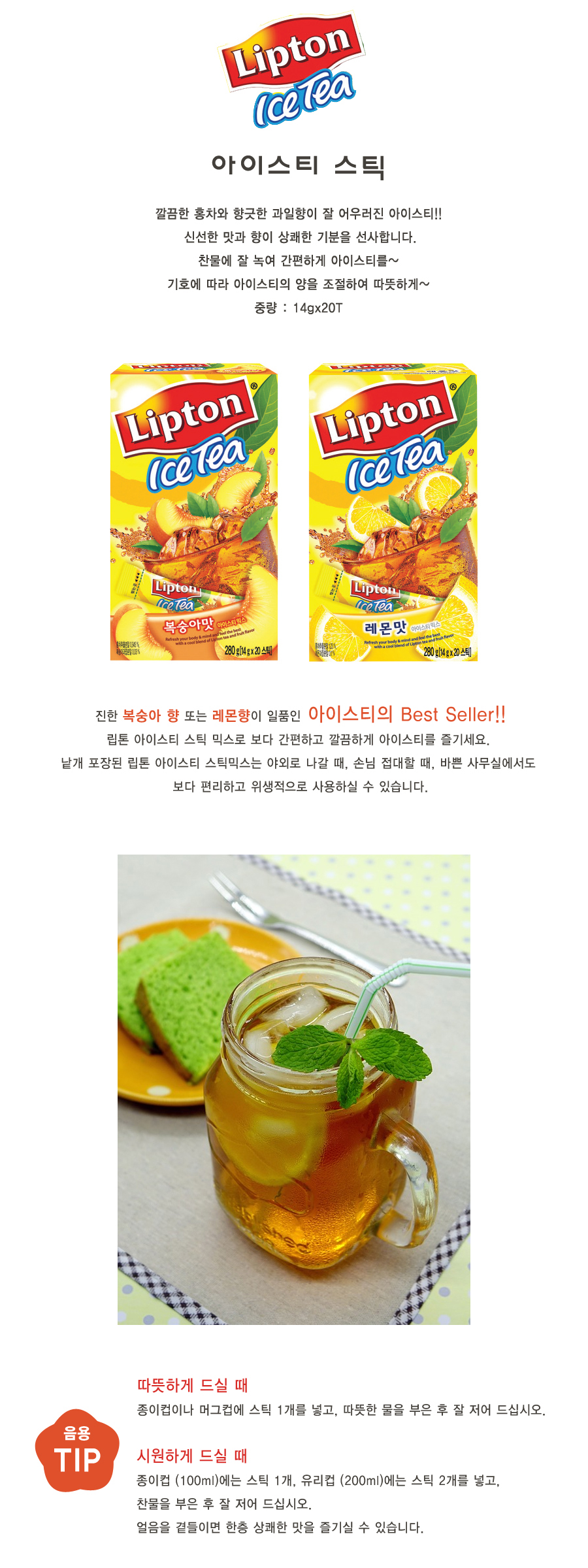 | 원재료명 및 함량 | 홍차추출분말(고형분95%이상,미국산),1.23%,레몬과즙분말,말토덱스트린, 합성착향료(레몬향)프랑스산,백설탕, 무수구연산, 이산화규소, 합성착향료 |