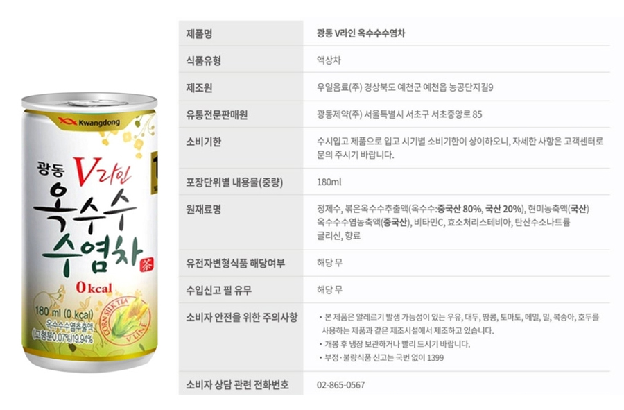 광동 옥수수수염차 (180ml,30캔/BOX)