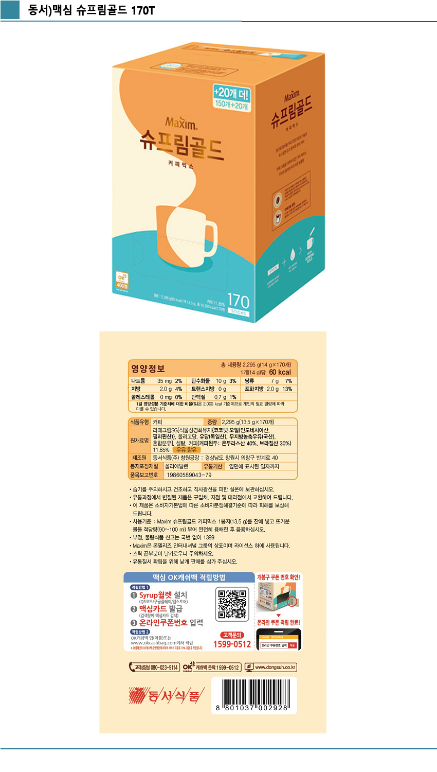 ¸Æ½É ½´ÇÁ¸²°ñµå Ä¿Çǹͽº (13.5g*170T)