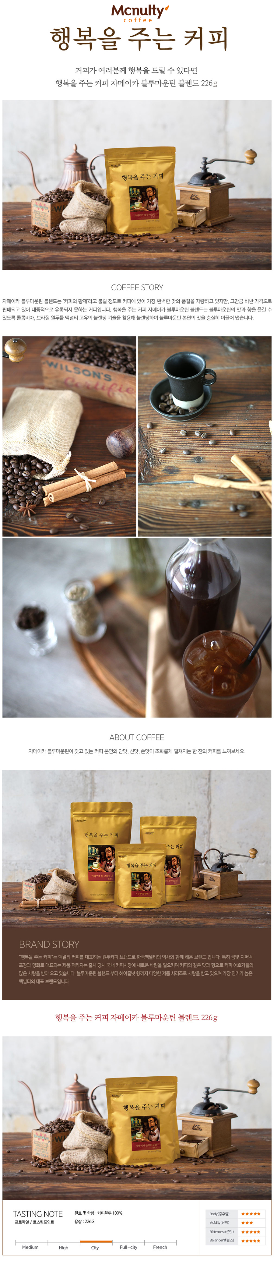 | 원재료명 및 함량 | 커피원두 100%(자메이카 블루마운틴, 브라질, 콜롬비아) |