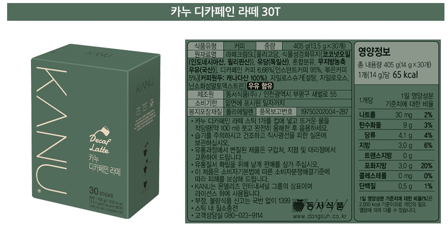 동서식품 카누 디카페인 라떼(13.5g*30T)