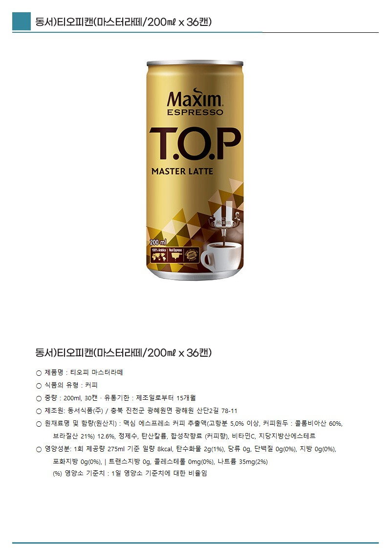 동서)티오피캔(마스터라떼/200㎖×36캔)