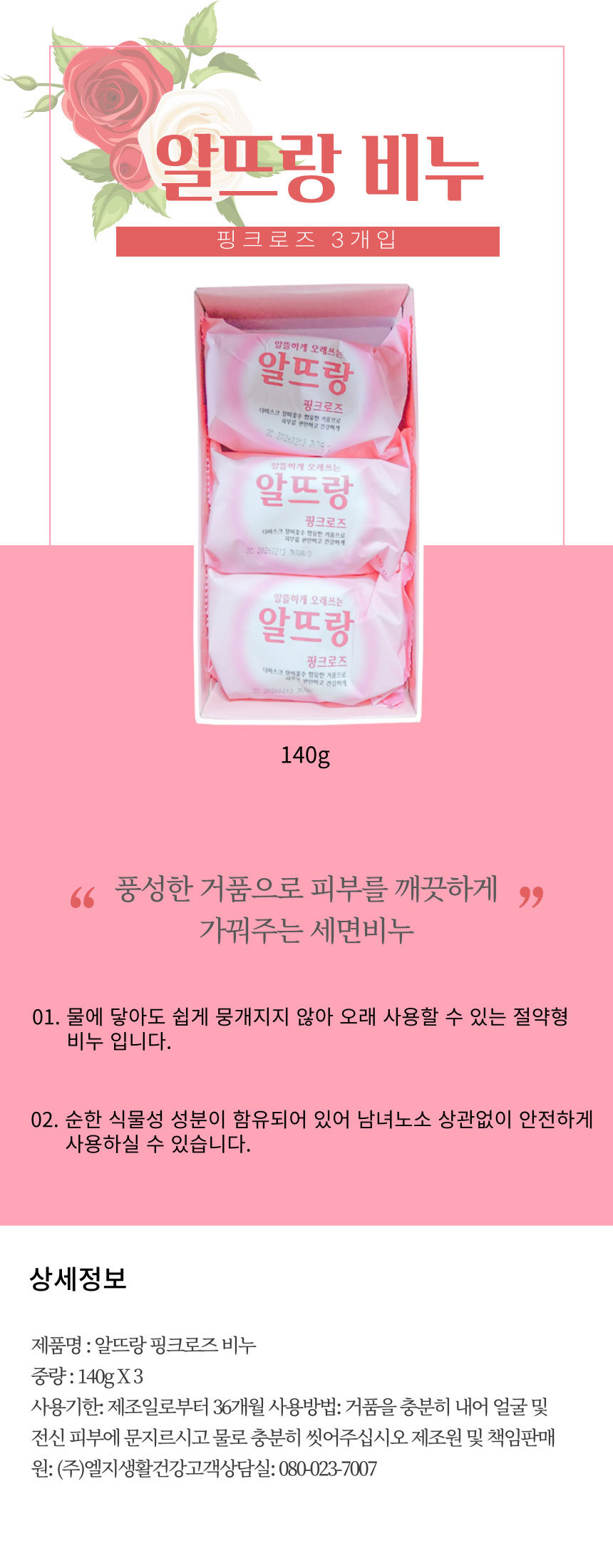 LG생활건강 알뜨랑비누 핑크 140g (3ea/1set)