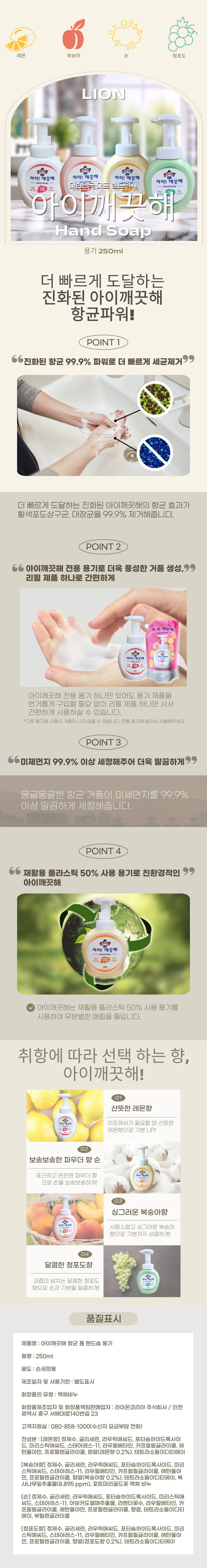 CJ라이온 아이깨끗해 핸드워시 순 250ml
