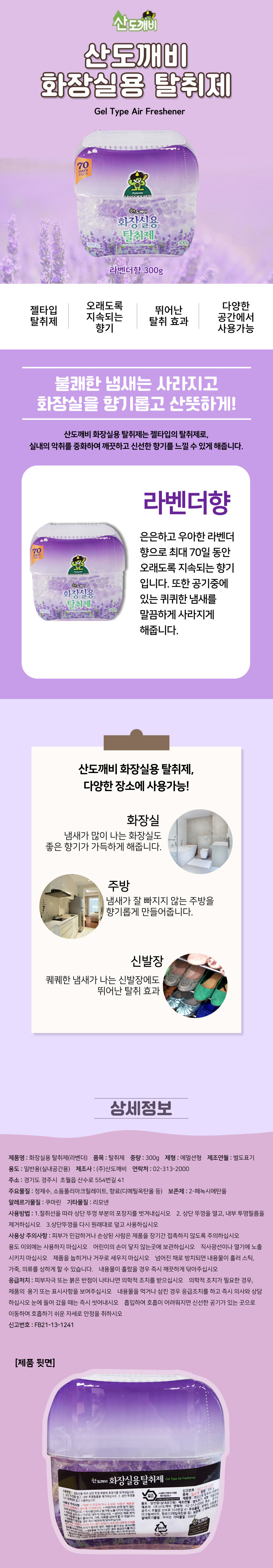 산도깨비 화장실용 탈취제 라벤더 향 300g