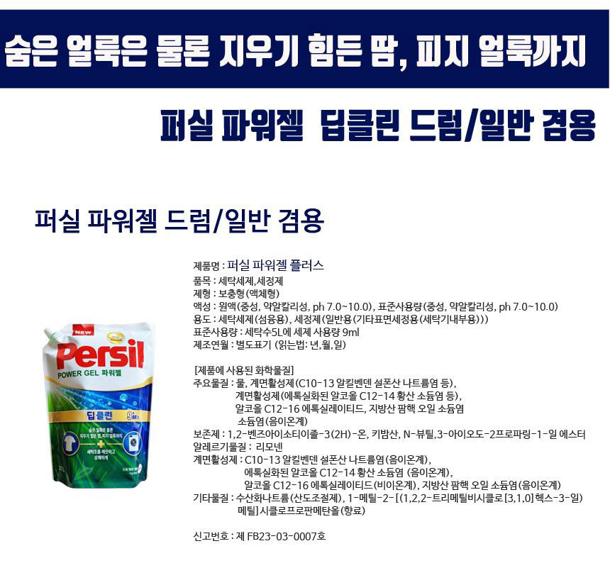 헨켈)퍼실 딥클린 일반/드럼겸용(리필/파워젤/2.1ℓ)