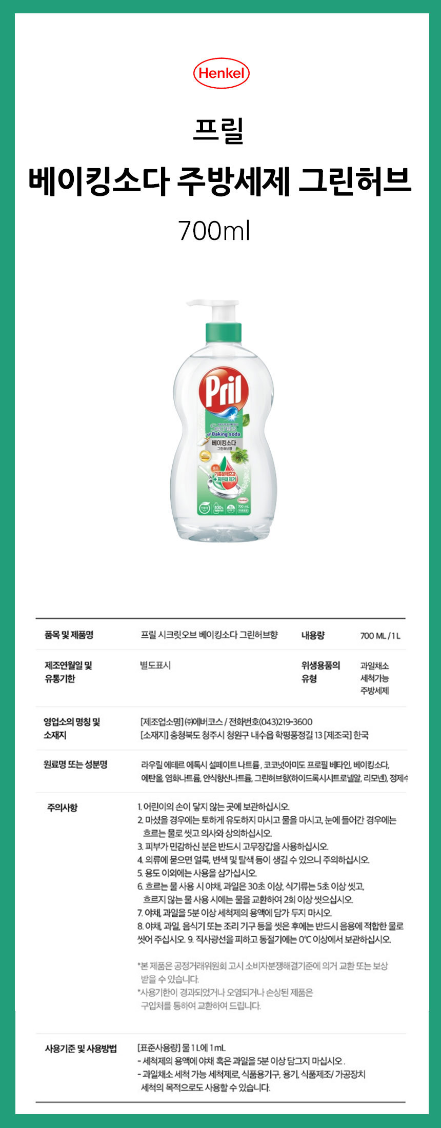 헨켈)프릴 시크릿 오브 베이킹소다(그린허브향/700㎖)