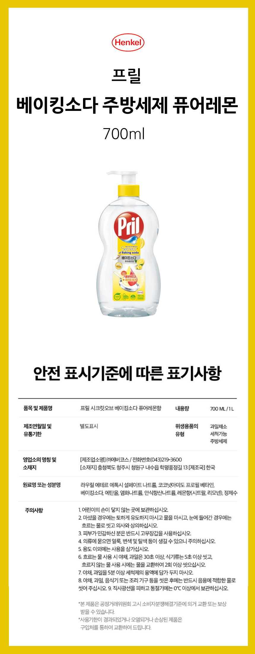 헨켈)프릴 시크릿 오브 베이킹소다(퓨어레몬향/700㎖)