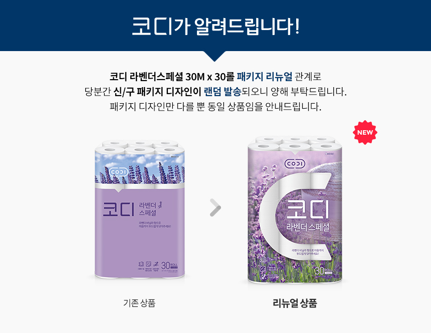 | 품명 및 모델명 | 코디 라벤더 두루마리 화장지 |