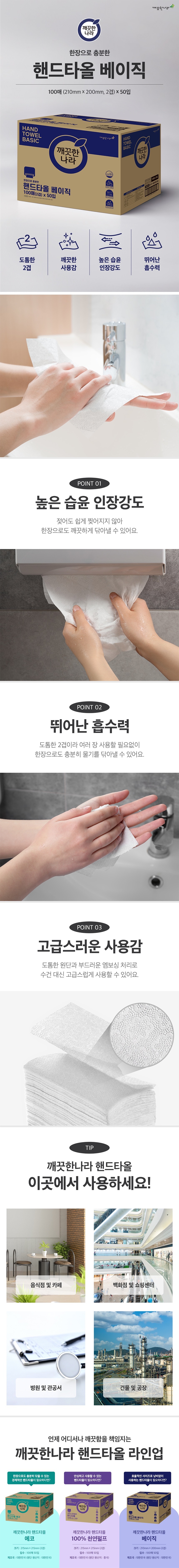 깨끗한나라 핸드타올 2겹 (100매50입/1BOX)