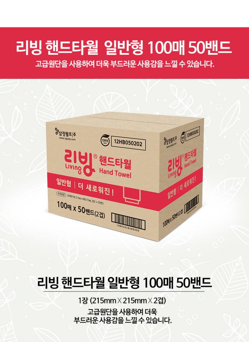 삼정펄프 리빙 핸드타올 (2겹,100매×50속/BOX)