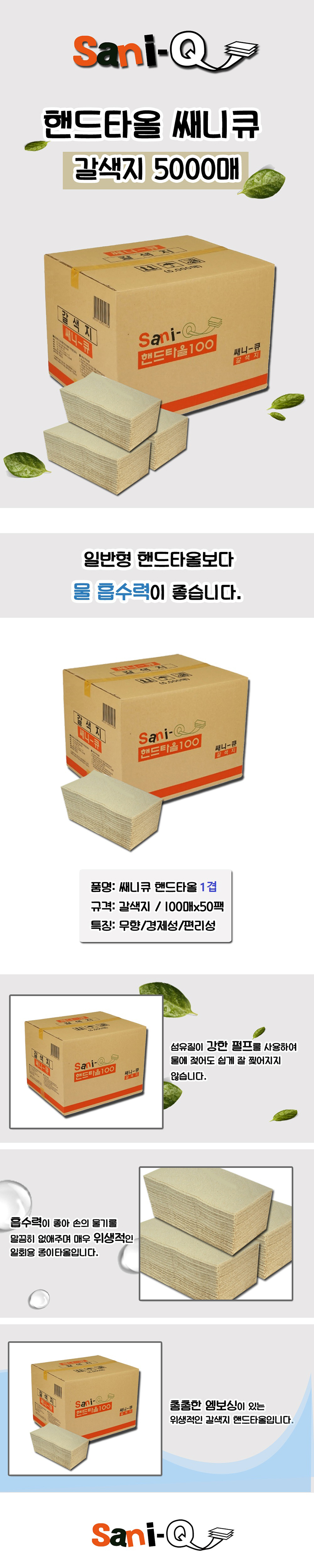 쌔니큐)핸드타올(갈색지/100매×50팩)