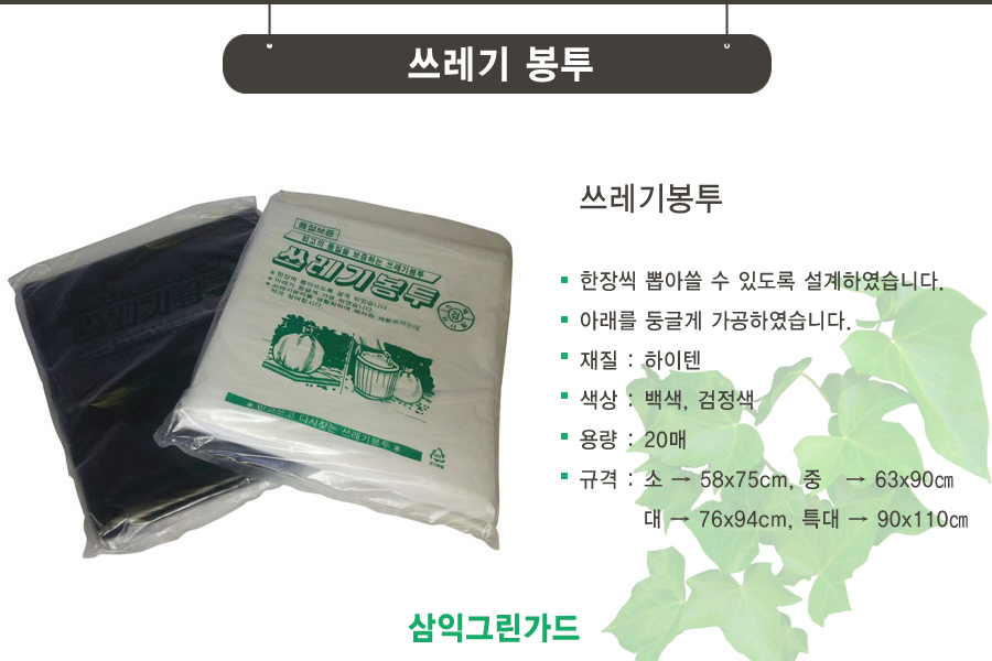 쓰레기봉투 검정(특대,배접,20매 90*110cm)