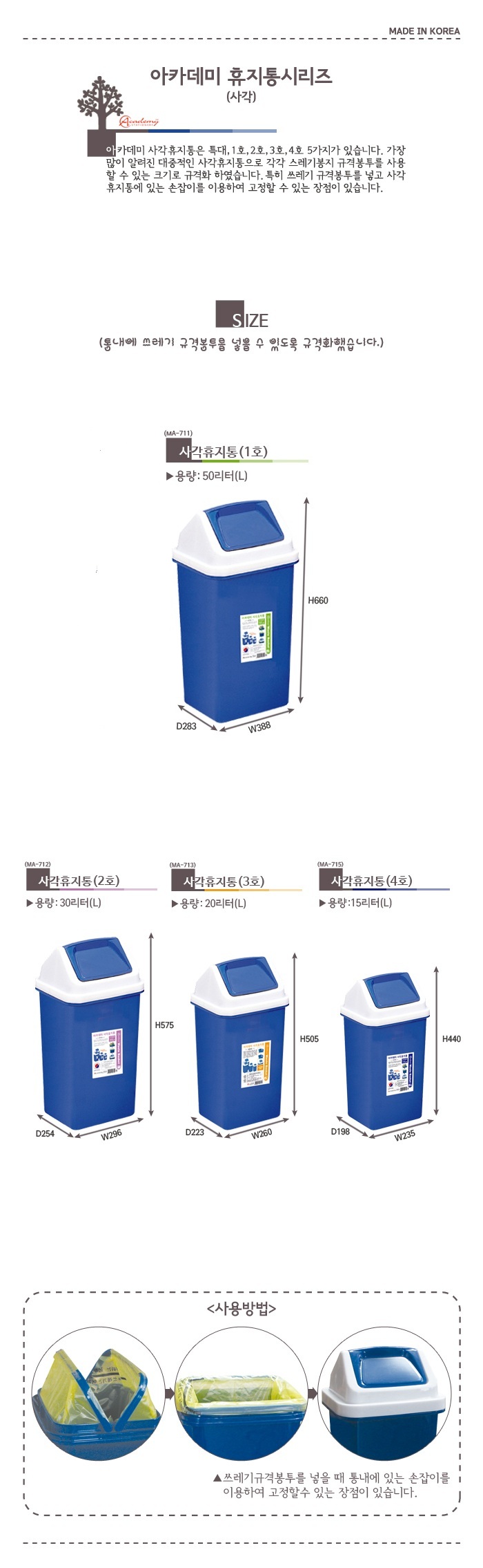 에이에스코리아)사각휴지통 50ℓ(1호/711/W338*D283*H660)