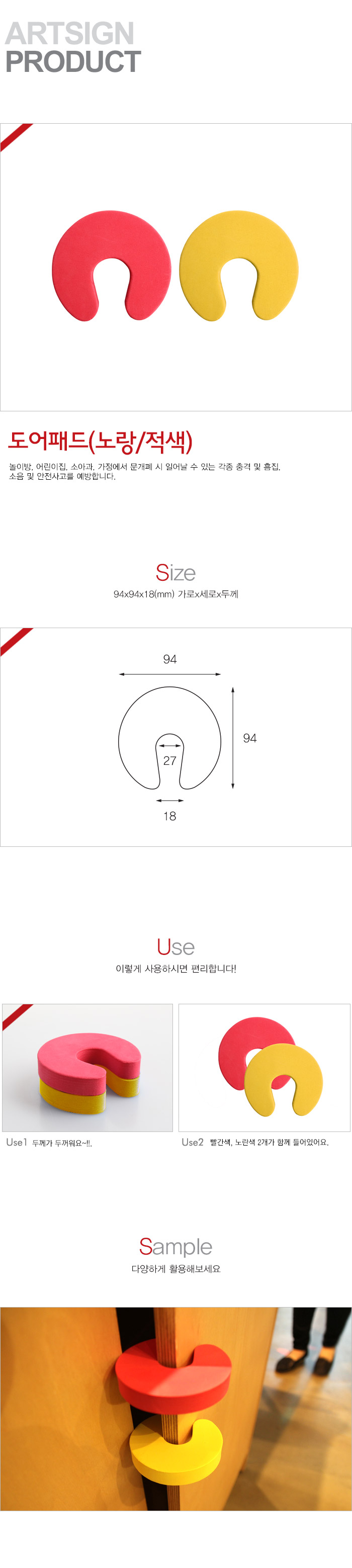 아트사인)도어패드(노랑,적색/94*94*18mm/2개입)/L0010/9863